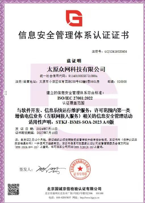 ISO/IEC 27001-信息安全管理体系认证证书