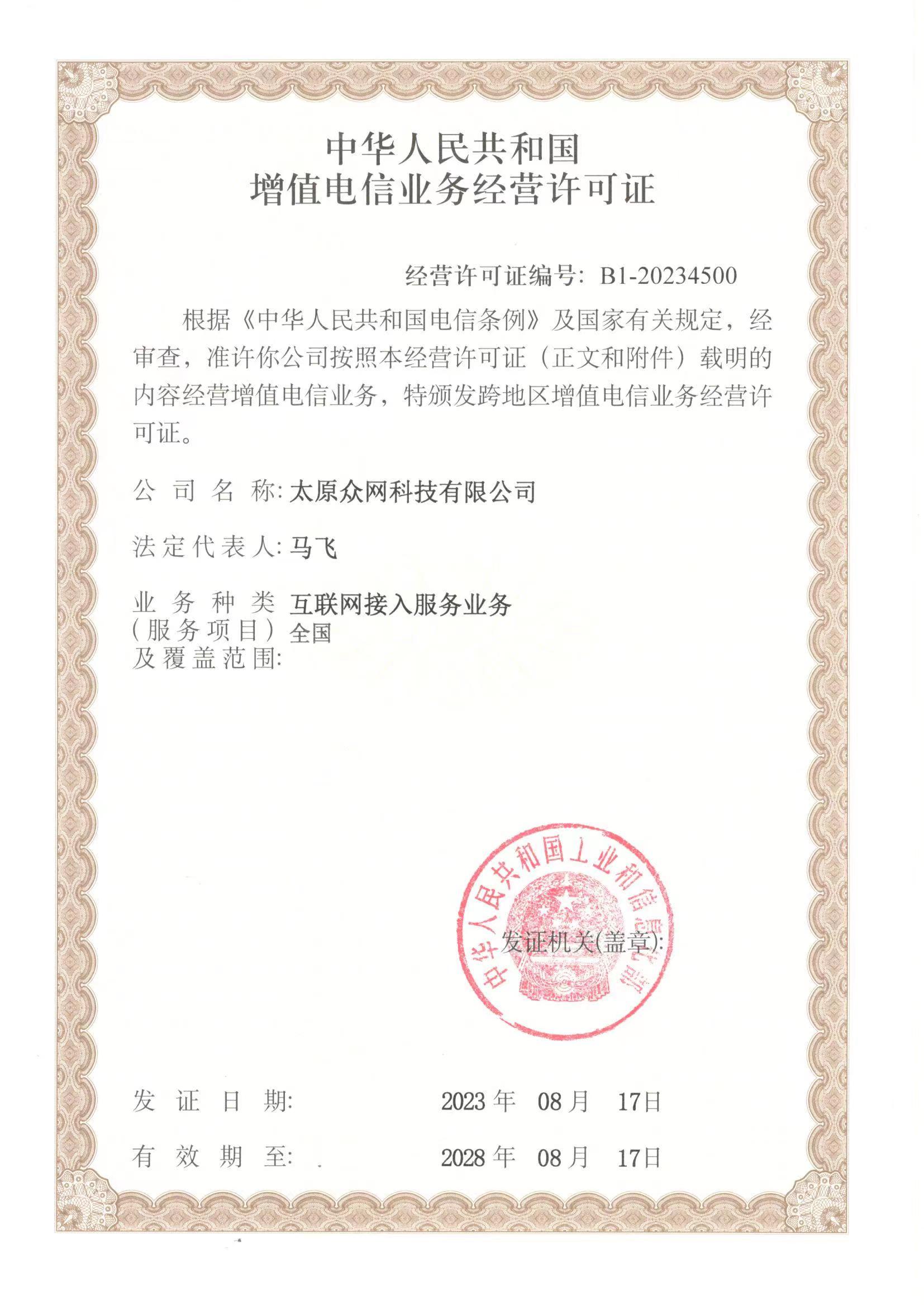 增值电信业务经营许可证