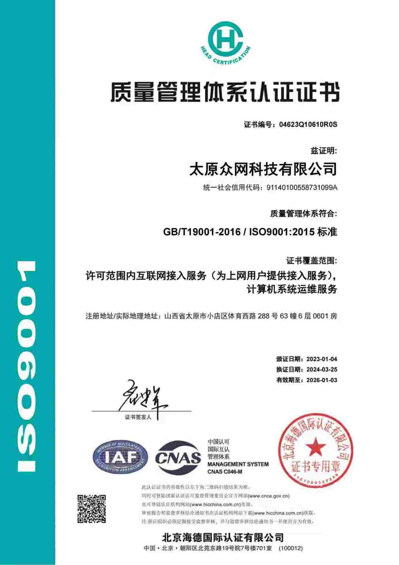 ISO9001-质量管理体系认证证书