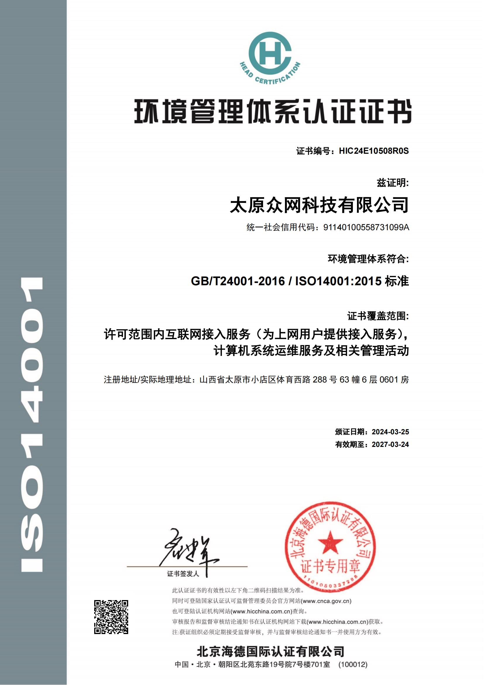 ISO14001-环境管理体系认证证书
